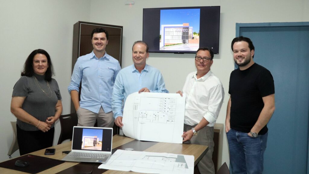 O projeto arquitetônico é assinado pela arquiteta Silvana Zurlo, que conduziu a apresentação técnica aos empresários Carlos Gil e Nicolas Gil, diretor-geral da Fatec,Fábio Costa, e ao coordenador do curso de Medicina, Bruno Maschio Neto.